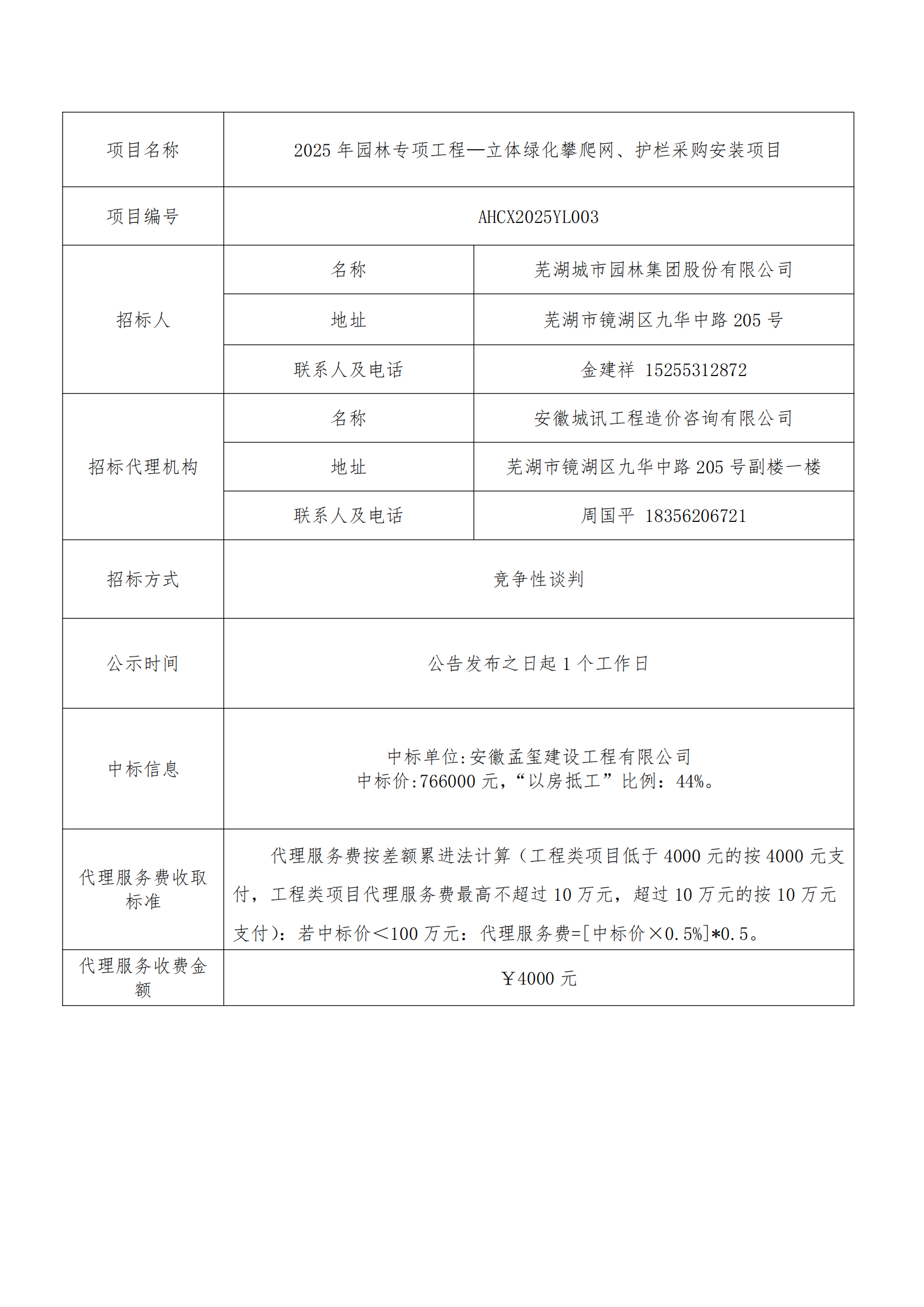 2025年園林專項工程—立體綠化攀爬網(wǎng)、護(hù)欄采購安裝項目中標(biāo)結(jié)果公告