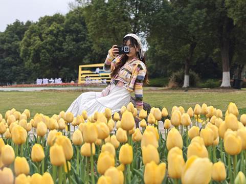 盡管人潮擁擠,但市民的熱情絲毫不減。“終于等到神山公園的郁金香開成海啦!不用羨慕杭州太子灣、上海靜安寺,更不用遠(yuǎn)赴荷蘭庫肯霍夫,家門口的莫奈花園直接封神?!本W(wǎng)友CC感嘆道。“去年去武漢看櫻花,今年家門口就有同款浪漫!”剛打卡完“花鐘”景觀的王先生笑言。公園周邊的共享單車被“一掃而空”,停車場更是一位難求?!笨粗笥讶锼⑵恋幕êR曨l,突然覺得擠一擠也值了!”游客陳小姐剛在朋友圈發(fā)完九宮格美照,轉(zhuǎn)身就扎進(jìn)了租觀光自行車的人潮里。