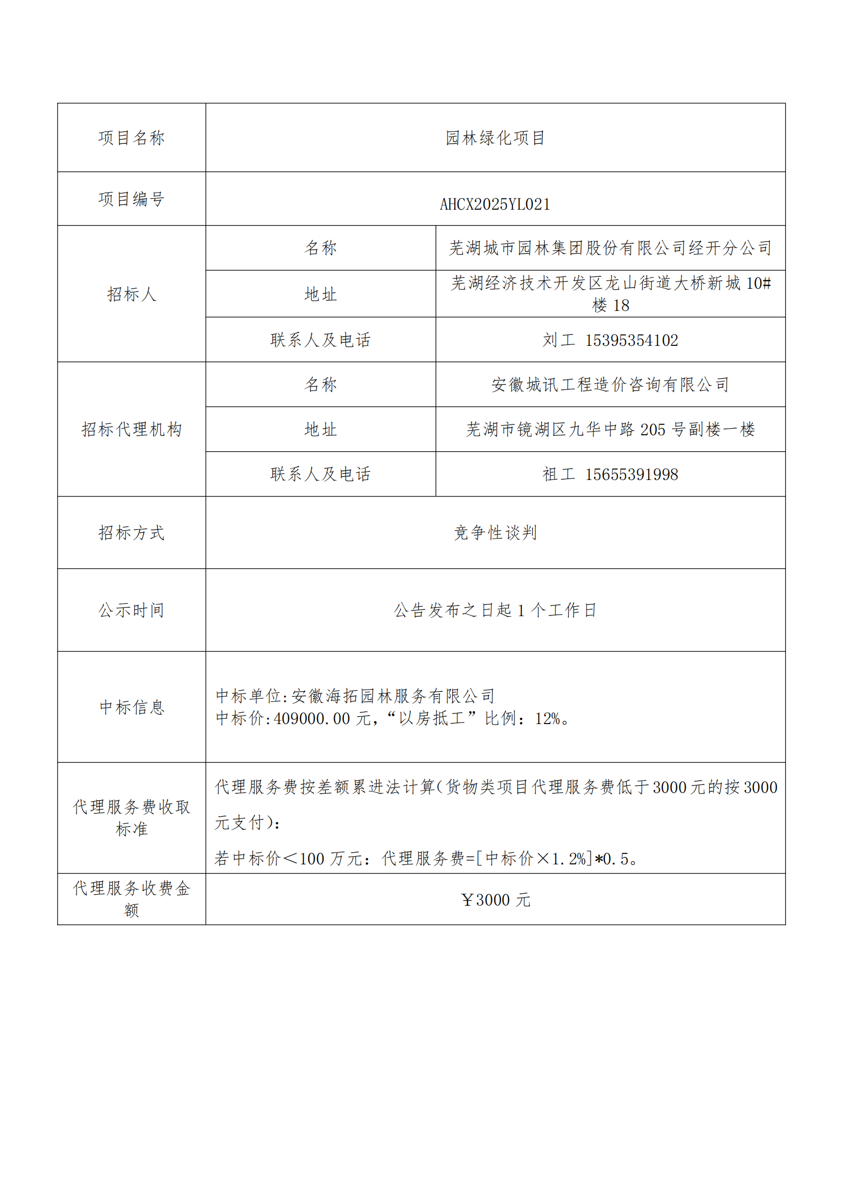 園林綠化項目成交結(jié)果公告