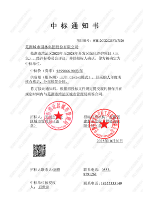 秋意漸濃,冬的序章悄然開(kāi)啟。10月20日,園林集團(tuán)迎來(lái)喜訊,成功中標(biāo)蕪湖市灣沚區(qū)2025年至2028年開(kāi)發(fā)區(qū)綠化養(yǎng)護(hù)項(xiàng)目(三包)。該項(xiàng)目中標(biāo)價(jià)為190萬(wàn)元/年,三年合同總金額570萬(wàn)元;項(xiàng)目綠化面積約50.89萬(wàn)平方米,其中行道樹(shù)約1739株。
