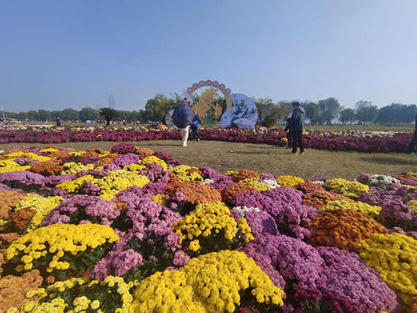 本次菊花展突破傳統(tǒng)形式,以開(kāi)放之姿迎接每一位市民與秋天對(duì)話:300+精品菊品,8大色系交織成錦,遍布9大拍照主題區(qū),形成移步異景的沉浸體驗(yàn);9大主題場(chǎng)景融合詩(shī)詞意境與現(xiàn)代美學(xué),從“采菊東籬”的田園造景,到“秋光疊影”的層疊花廊,每一處都是鏡頭與自然的對(duì)話;1座精品菊花展臺(tái)集中呈現(xiàn)名貴菊種,展現(xiàn)菊文化的深厚底蘊(yùn)與育種匠心;散布其間的藝術(shù)打卡點(diǎn),將秋日元素與江城文化符號(hào)巧妙結(jié)合,實(shí)現(xiàn)傳統(tǒng)秋韻與當(dāng)代美學(xué)的詩(shī)意共鳴。“從前賞菊多在園林殿堂,如今漫步堤岸便是菊海爛漫!”這聲贊嘆,正成為許多蕪湖人的共同感受。