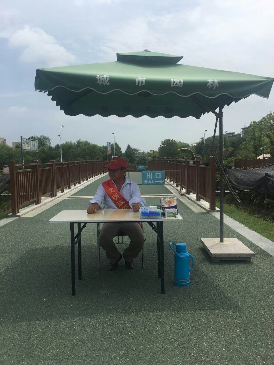 雕塑公園是一個美麗而有人文情懷的地方,吸引著本地和國內(nèi)外的大量游客,即便炎熱的夏季依然有慕名而來的游客參觀游覽,因此雕塑公園的管理單位蕪湖市神山苗圃綠化工程有限公司積極組織員工參與志愿者服務(wù),在雕塑公園的東大門建立起志愿者服務(wù)站,針對炎熱天氣和游客需求準(zhǔn)備藿香正氣液、人丹、風(fēng)油精等防暑用品,志愿者佩戴標(biāo)識,面帶笑容,隨時為游客提供指引及應(yīng)急服務(wù),受到廣大游客的贊譽。
