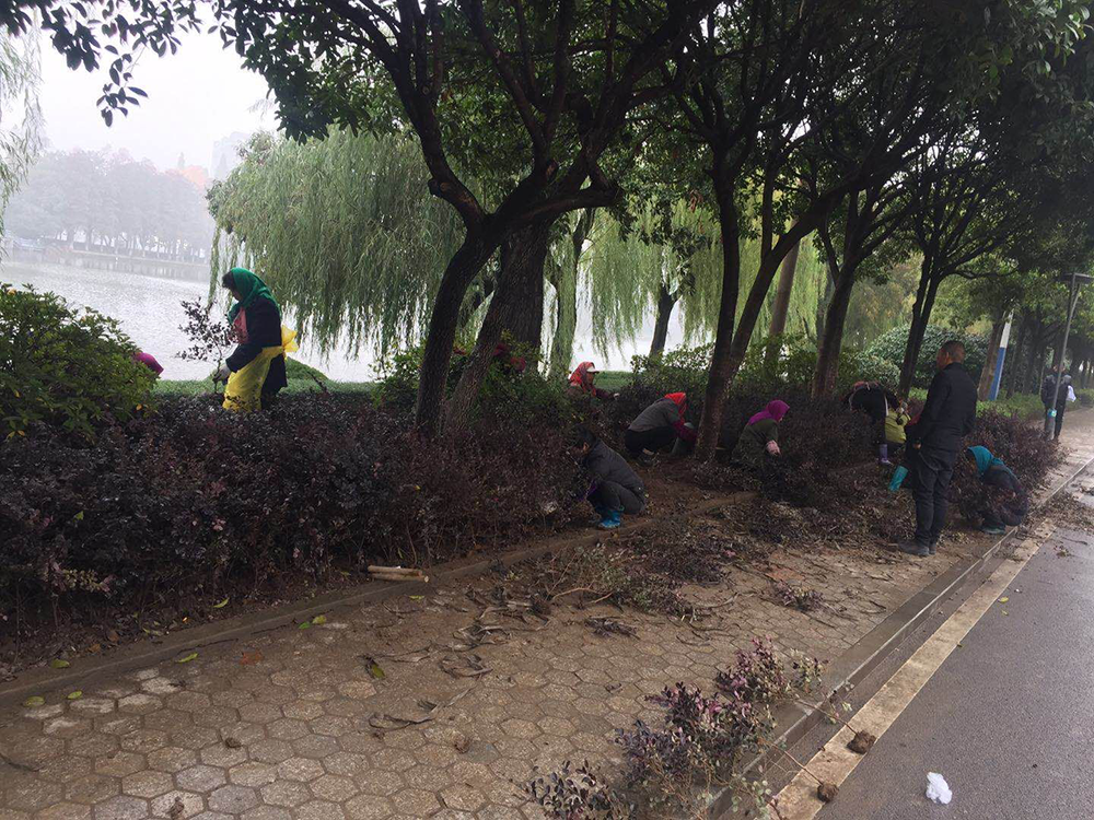 冬意初臨,鏡湖公園綠化提升改造工程正有條不紊進行,為提高苗木成活率,現(xiàn)場工作人員嚴格控制施工程序,冒雨按圖施工。做好翻地、平整準備工作,嚴格審核苗木品種、數(shù)量及規(guī)格,確保“栽植一片,成活一片”。