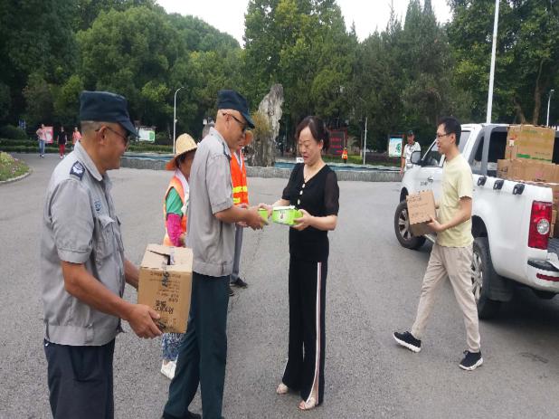 驕陽似火,持續(xù)的高溫天氣給蕪湖城市園林集團有限公司的綠化養(yǎng)護、公園管理等安全生產(chǎn)工作帶來新的考驗。為確保各子公司、分公司一線廣大勞務(wù)人員平安度暑,促進各養(yǎng)護管理標(biāo)段繼續(xù)保持良好的安全生產(chǎn)態(tài)勢,8月25日和26日,園林集團副總曹慧同志及行政部一行代表集團工會到各子公司、分公司,為堅守崗位的一線工人們送去藥品、沐浴洗護等防暑降溫物資,也將集團公司的關(guān)心和愛護帶給他們。