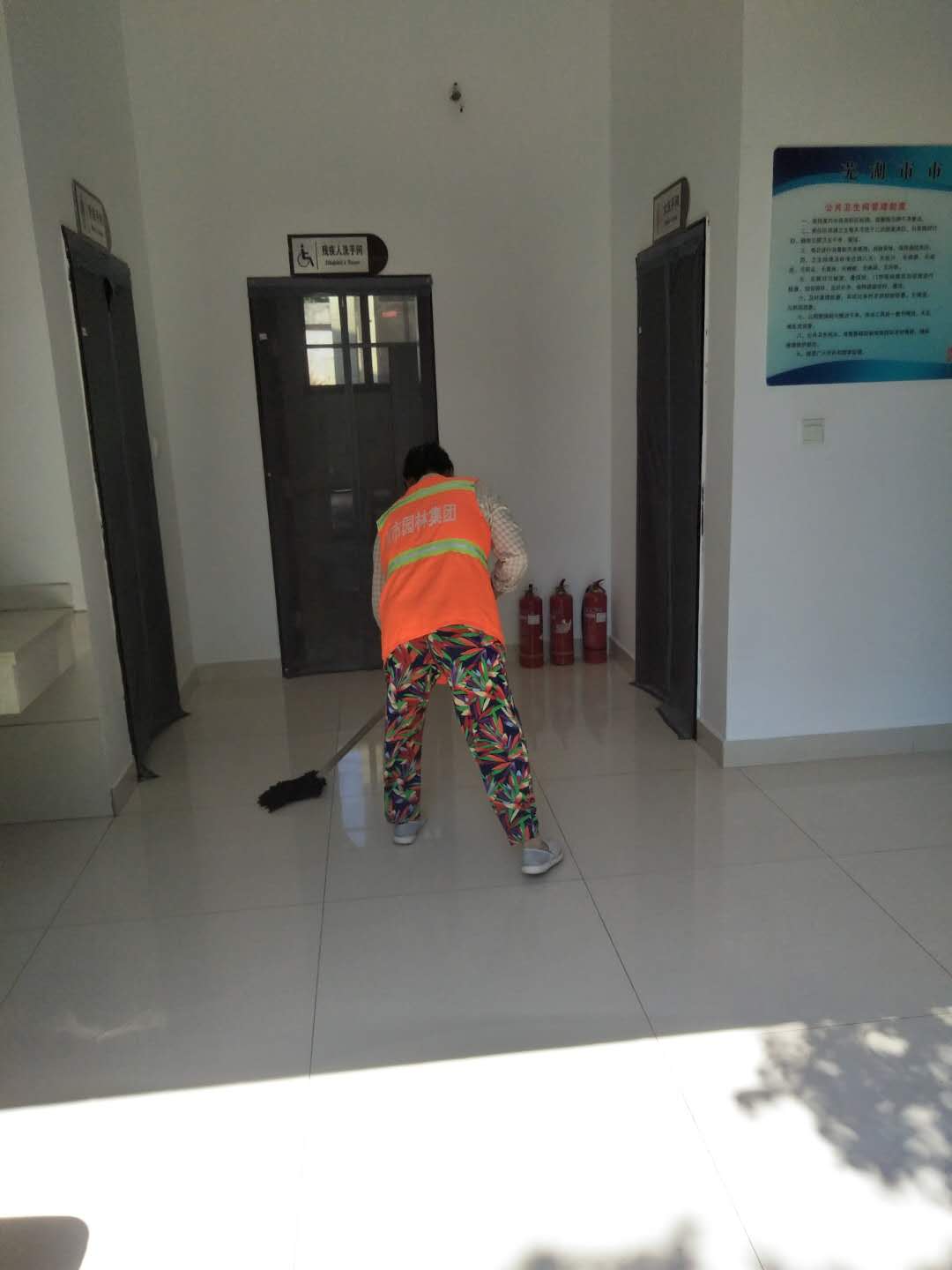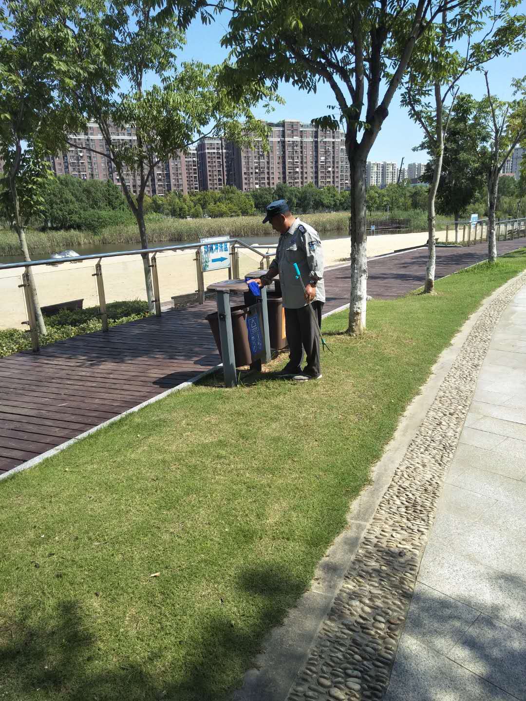 保潔人員將本職工作范圍內(nèi)的公廁、路面及亭臺(tái)座椅等清掃干凈,不留死角,保證干凈整潔無(wú)污染無(wú)異味;雜物統(tǒng)一歸放、損壞設(shè)施及時(shí)報(bào)修、警示標(biāo)牌等保持清潔;園區(qū)各處死角及垃圾桶每日清理。保安人員均按要求統(tǒng)一著裝上崗,穿戴整齊,對(duì)待游客使用文明用語(yǔ);同時(shí),也加強(qiáng)了園區(qū)內(nèi)的治安巡邏,對(duì)游客攀爬雕塑、攀折樹(shù)枝、寵物入園、水域嬉戲等不文明不安全的行為進(jìn)行勸導(dǎo)和制止。