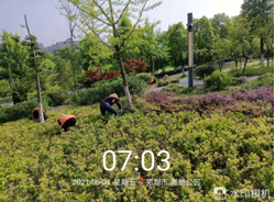 為了在黨的100歲生日之際向游客展現(xiàn)神山公園最美的一面,我們對(duì)公園內(nèi)的綠化工作做了更高的要求,除每日日常綠化維護(hù)外,我們還加班加點(diǎn)對(duì)綠化進(jìn)行了進(jìn)一步提升,更加細(xì)致地修剪養(yǎng)護(hù)草坪、模紋,對(duì)水域內(nèi)的水草、浮萍做定時(shí)清理,做好水質(zhì)管控。