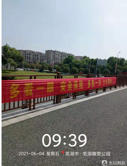 同時(shí),結(jié)合“全國安全生產(chǎn)月”活動(dòng),我們利用公園的有效設(shè)備、區(qū)域?qū)κ忻裼慰瓦M(jìn)行安全文化宣傳;對(duì)管理用房、公共區(qū)域的用電做了安全檢查,防火設(shè)備按標(biāo)準(zhǔn)要求配備;山林區(qū)域的防火工作也同時(shí)安排進(jìn)每日工作流程,定時(shí)安排人員巡山檢查,排除山林火災(zāi)隱患。