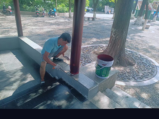二是對園容綠化樹木進行修剪整形、補植補栽;清掃保潔全園主干道、綠地、池塘水域;對廣場座椅、燈桿、標志牌、健身器材、衛(wèi)生間內(nèi)外設施等加大保潔力度;加強基礎設施維護,維修更換廣場座椅、廁所硬件設備等。積極營造干凈、整潔、靚麗、優(yōu)美的公園環(huán)境,保證文明創(chuàng)建迎檢期間公園最佳景觀效果。