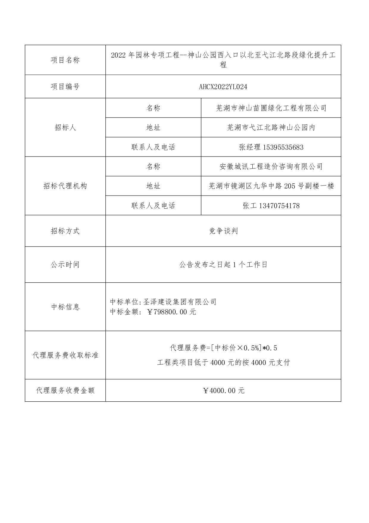 2022年園林專(zhuān)項(xiàng)工程--神山公園西入口以北至弋江北路段綠化提升工程中標(biāo)