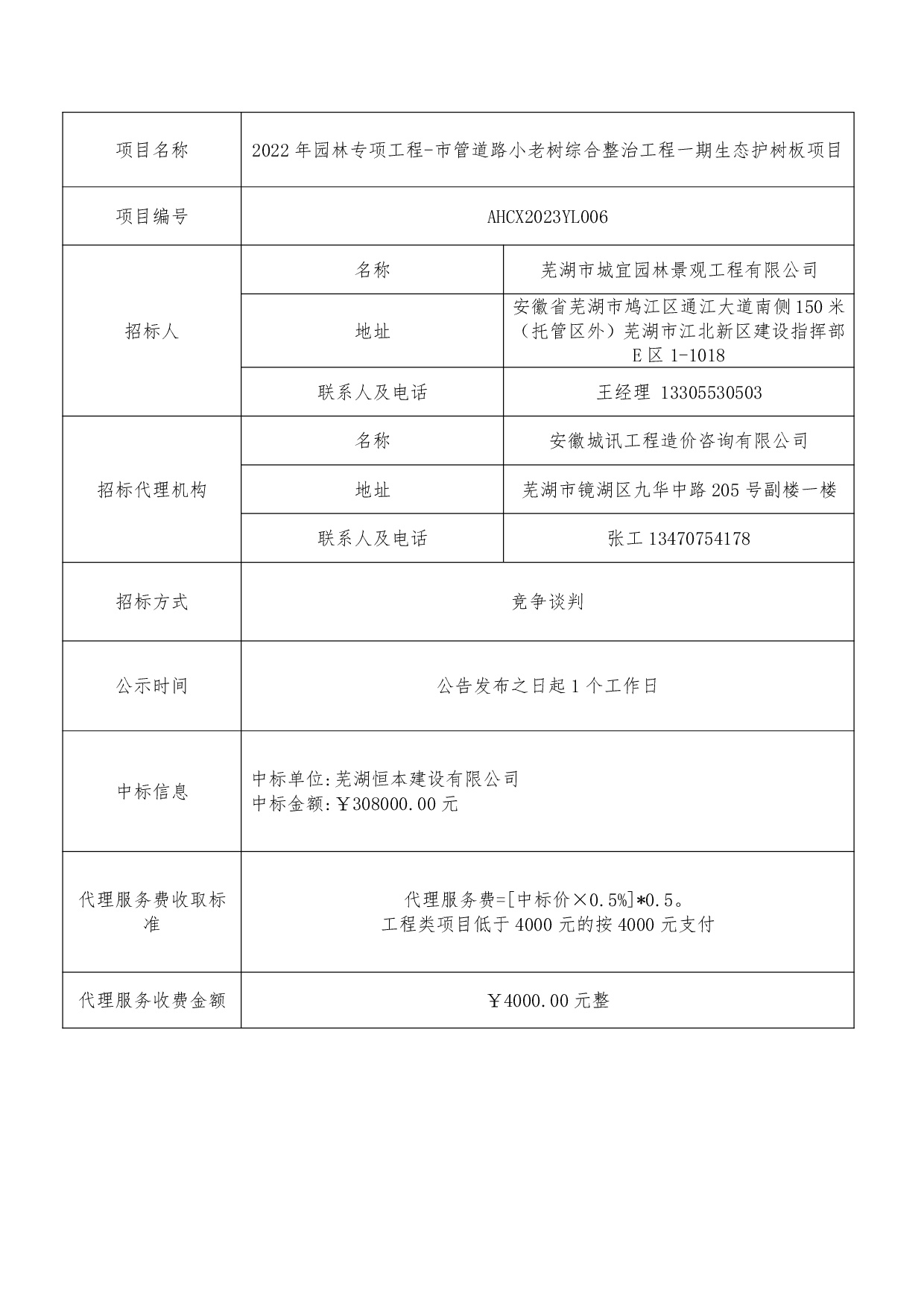 2022年園林專項工程-市管道路小老樹綜合整治工程一期生態(tài)護樹板項目中標(biāo)...
