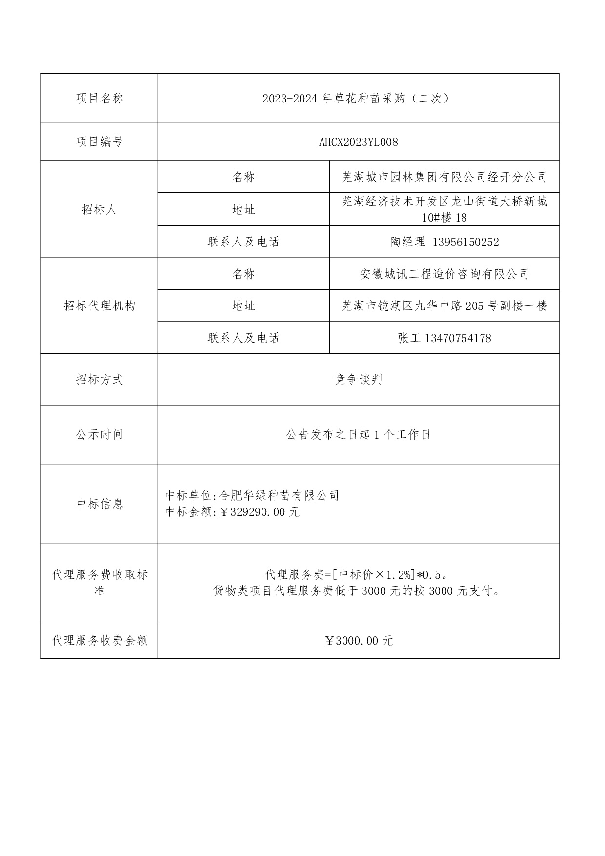 2023-2024年草花種苗采購(二次)中標(biāo)結(jié)果公示