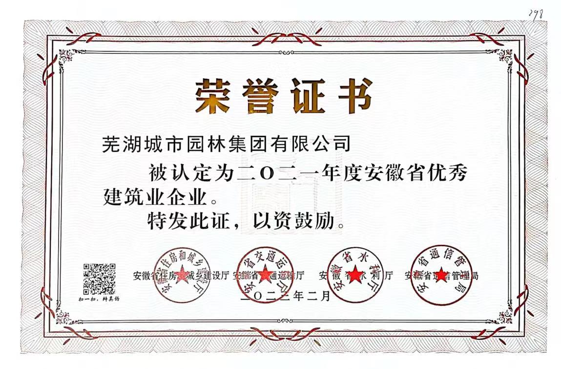 近日,安徽省住房城鄉(xiāng)建設(shè)廳公布2021年度安徽省優(yōu)秀建筑業(yè)企業(yè)名單,園林集團憑借自身過硬綜合實力光榮上榜,榮獲“2021年度安徽省優(yōu)秀建筑業(yè)企業(yè)”榮譽稱號。
