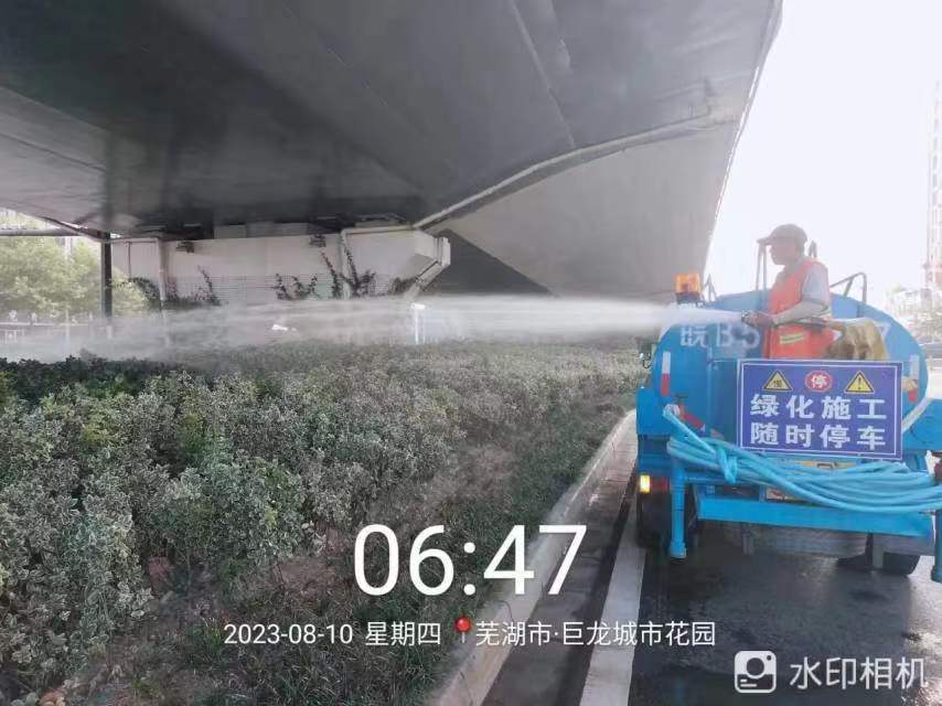 為最大限度的保證綠化苗木成活率,園林集團組織綠化養(yǎng)護人員積極開展抗旱澆水工作,澆水采取人工作業(yè)和機械作業(yè)相結(jié)合,利用水車、消防栓等設(shè)備,使用澆灌、噴灌等多種形式,每日早4點到10點,下午4點夜間12點對城市主干道綠化帶及公園、廣場苗木進行全域澆灌。