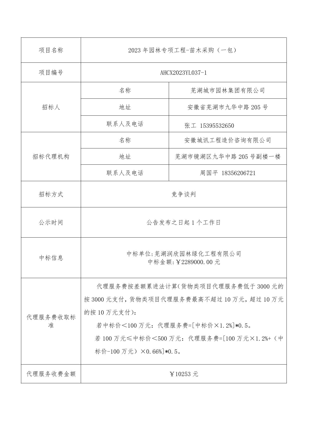 2023年園林專項工程-苗木采購(一包)中標(biāo)結(jié)果公示