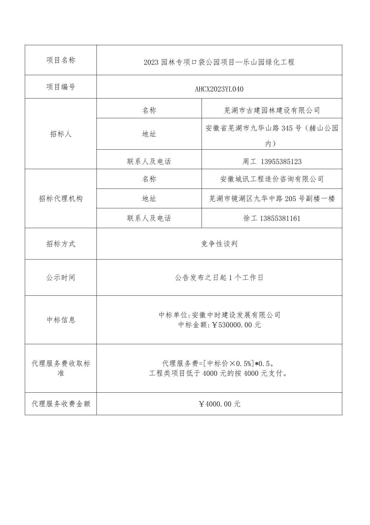 2023園林專項(xiàng)口袋公園項(xiàng)目—樂(lè)山園綠化工程中標(biāo)結(jié)果公示