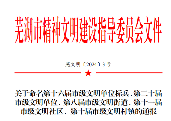 近日,園林集團喜獲兩項重要榮譽,根據(jù)蕪湖市精神文明建設指導委員會發(fā)布的通報,園林集團榮獲了“第二十屆市級文明單位”榮譽稱號。這一榮譽的獲得充分肯定了園林集團在推動社會責任、促進文化建設方面的積極作用,凸顯了其在城市美化和社會發(fā)展中的重要地位.